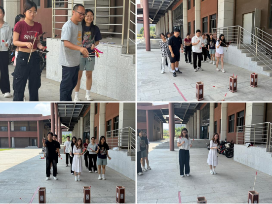 现场气氛热烈,笑声不断。投壶区,同学们手持箭矢,瞄准壶口,动作或轻巧或豪迈,每一次精准的投掷都引得周围欢呼雀跃;踢毽子场地,五彩的毽子在空中翻飞,少数民族员工们身姿灵动,用脚尖、膝盖、肩膀等部位巧妙地控制毽子的飞行轨迹,展示着高超的技艺。老师们也积极参与其中,与员工们一起沉浸在这欢乐的氛围里。大家不分民族、不分年级,相互加油鼓劲,交流技巧,增进了彼此之间的了解与友谊。活动中,少数民族员工们还分享了各自民族的传统文化和风俗习惯,让在场的每一个人对中华民族多元一体的文化有了更深刻的认识,进一步凝聚了民族团结的力量。